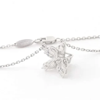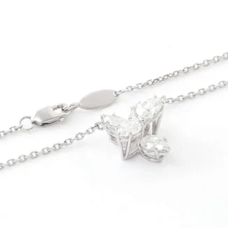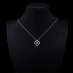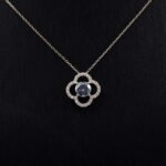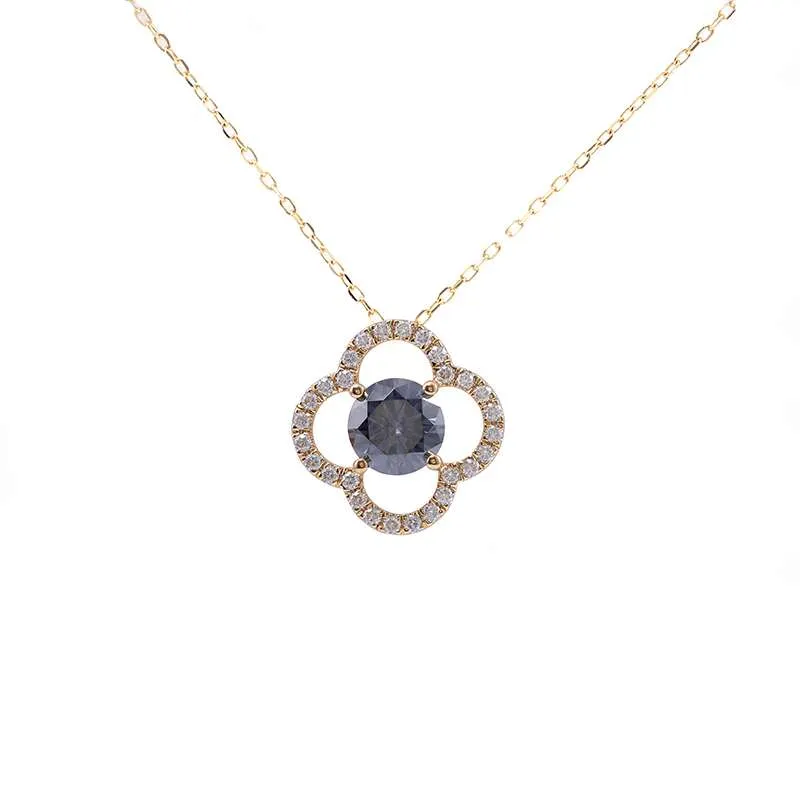 Embrace the allure of our Luminous Clover Pendant necklace featuring a captivating gray moissanite centerstone encircled by a clover-shaped halo of sparkling diamonds. This elegant piece rests comfortably on a 16-inch chain, adding a touch of sophistication to any outfit.