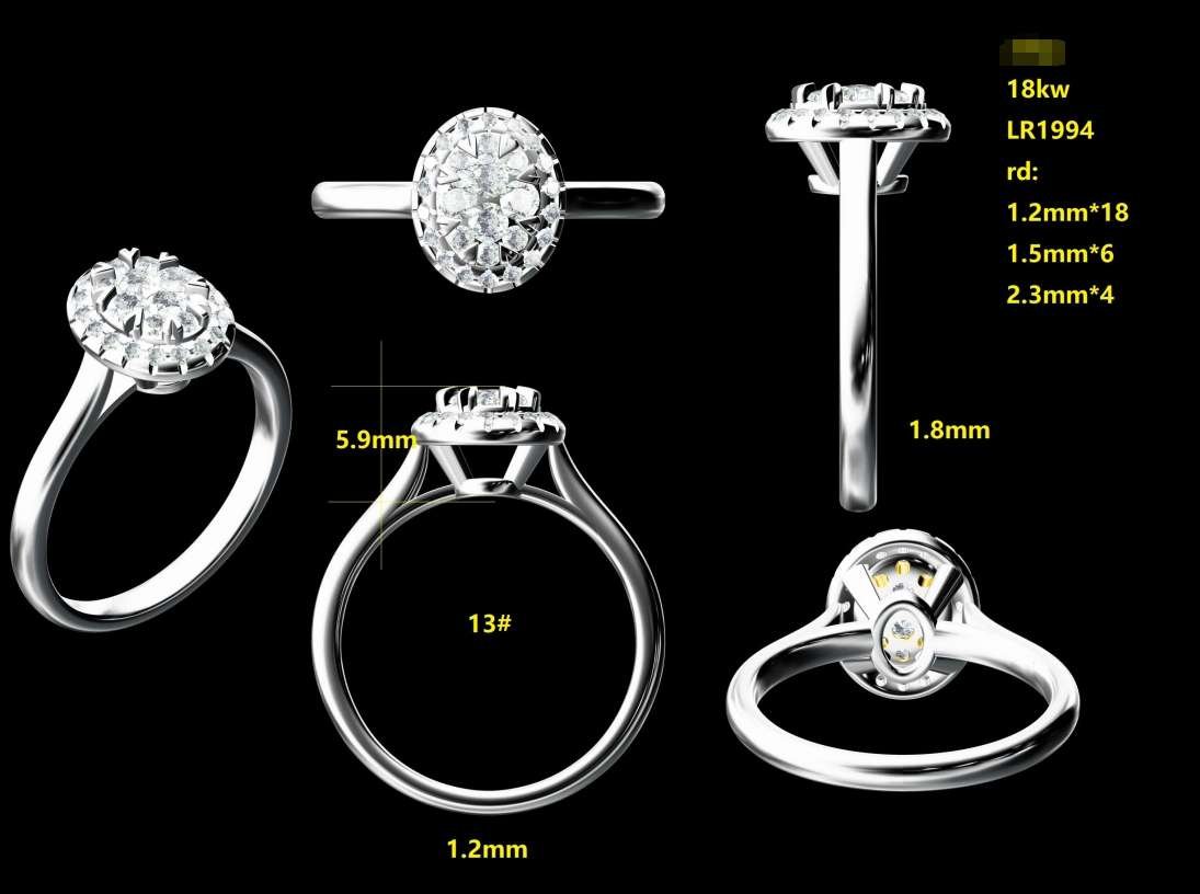 Admire the brilliance of our 18K white gold round diamond cluster ring, featuring a mesmerizing array of round diamonds in varying sizes. This exquisite piece combines a central cluster of smaller gems, creating an illusion of a larger stone, and is crafted from luxurious 18KW gold. The 6.5# ring size offers a comfortable fit, making it the perfect choice for a statement-making accessory.