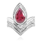 2.0ct Red Pear Shape Moissanite Engagement Ring Set