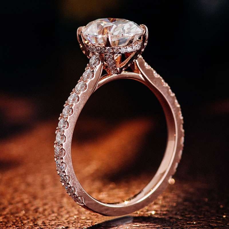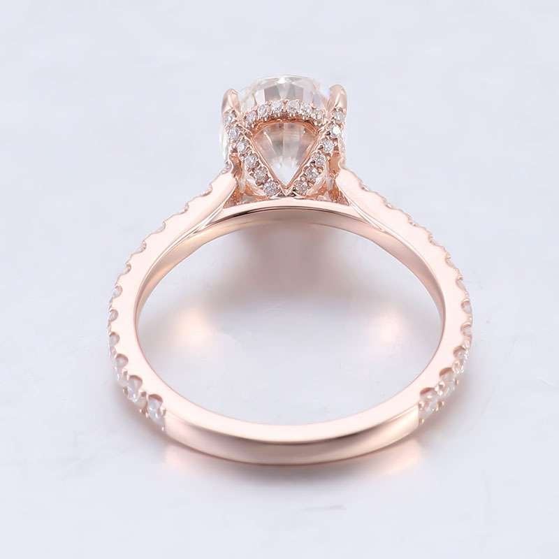 2.5 Carat Oval Moissanite Engagement Ring | Rose Gold Diamond-Studded Band