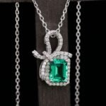 Unwrap radiant beauty with this exquisite 2.5ct lab emerald halo pendant necklace. Delicately crafted in a gift ribbon style, the vibrant emerald gemstone takes center stage, enveloped in a shimmering halo of sparkling accents. This captivating necklace captures the essence of timeless elegance, making it a treasured gift for yourself or someone special.