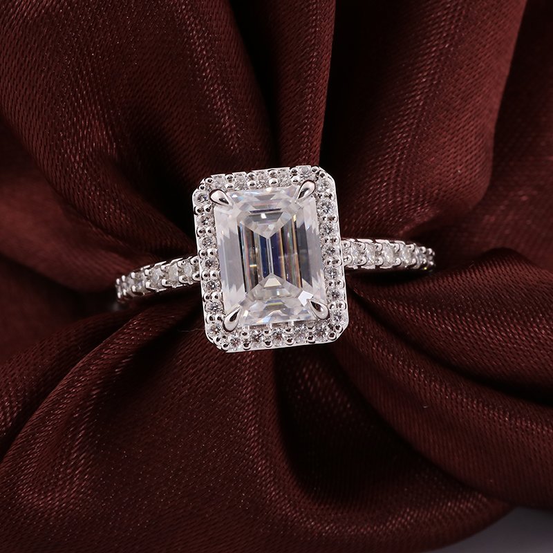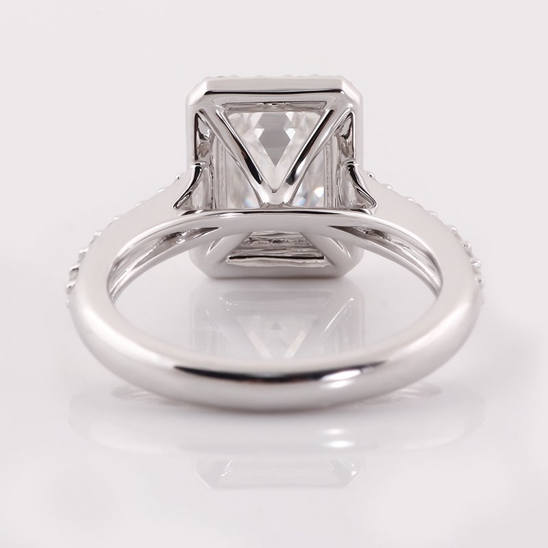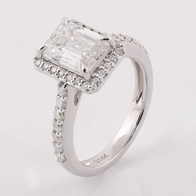 2.5ct Rectangle Moissanite Classic Halo Pave Engagement Ring