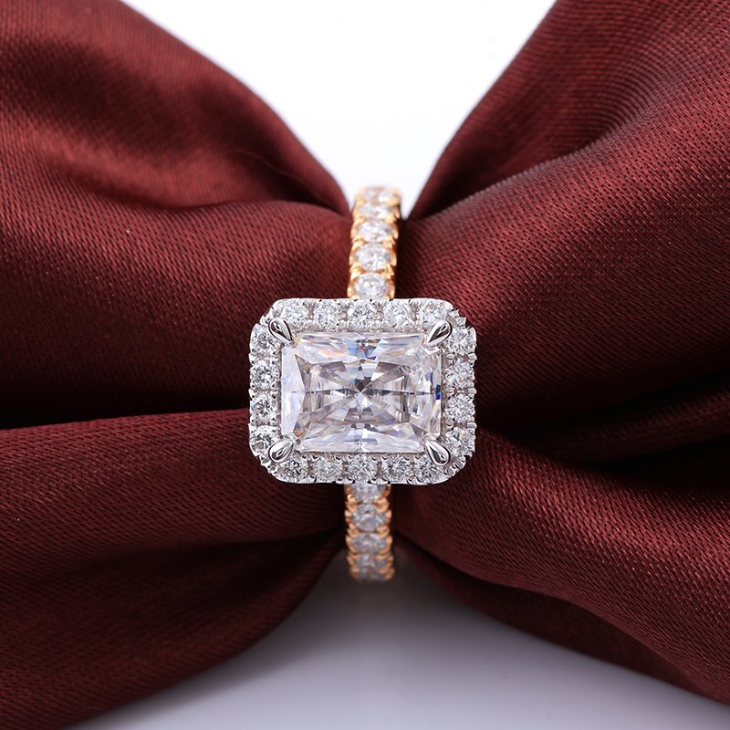 2ct Radiant Halo Pave Moissanite Shinny Ring