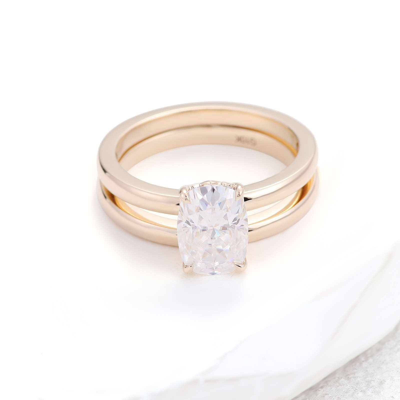 3CT Cushion Cut Moissanite Yellow Gold Ring Set