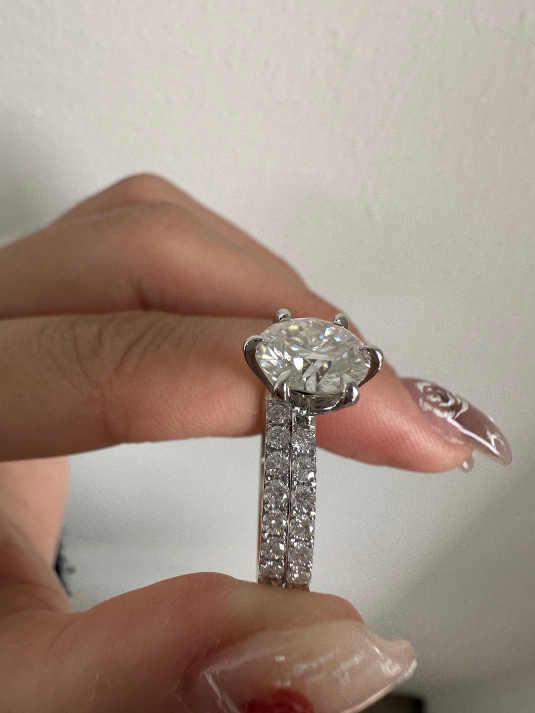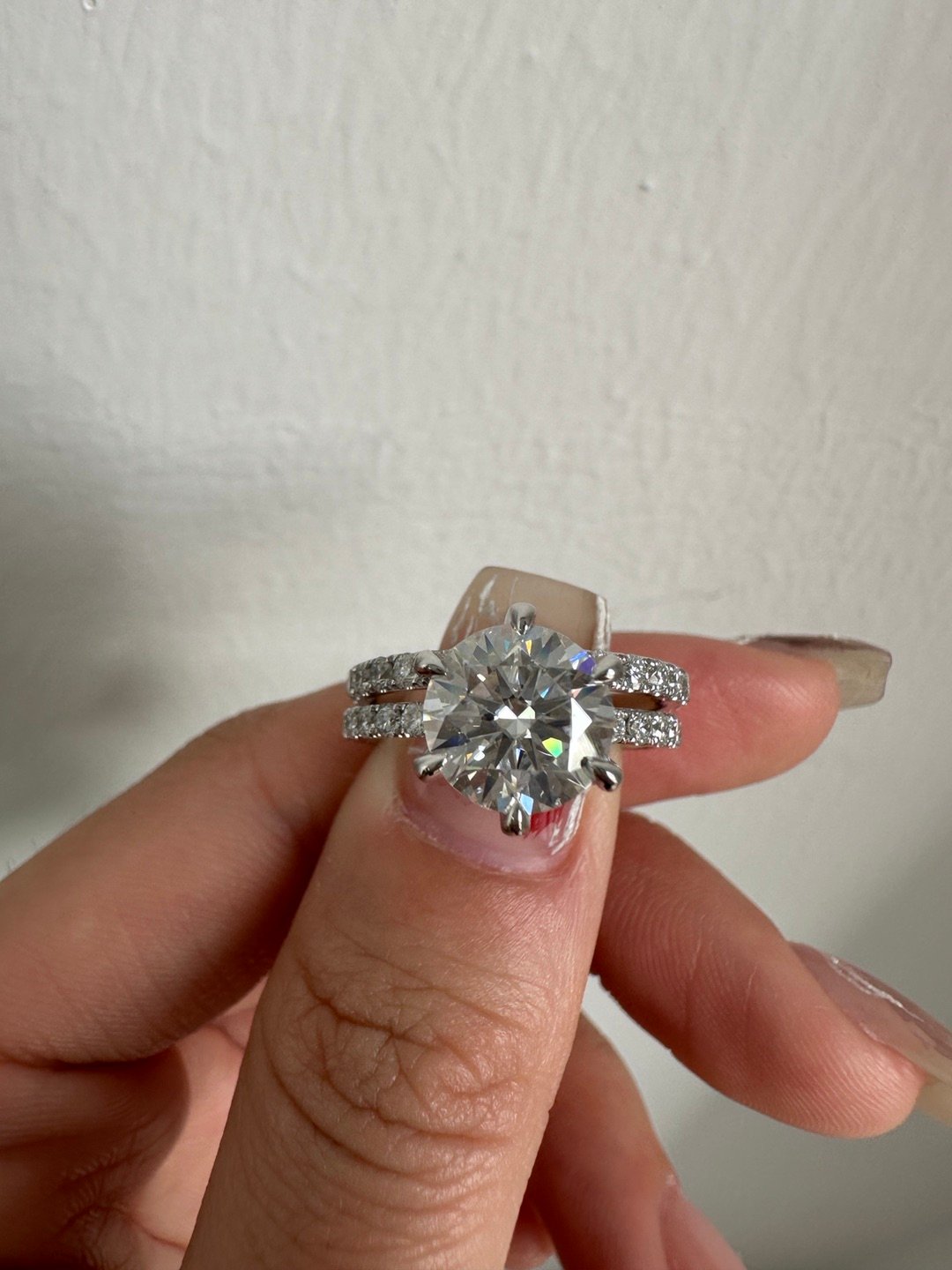 3ct Round Brilliant Cut Pave-Setting Band Moissanite Ring Set