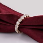 This stunning ring band inlaid with 18 pieces of round brilliant cut 3.8mm moissanites.The whole ring is studded with stones to make it look even more dazzling.