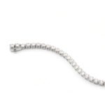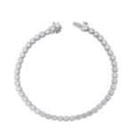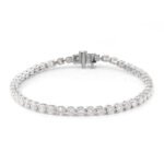 *This eye-catching tennis bracelet embellishes the wrist with 4.6CTW of shimmering moissanites individually set in lustrous white gold links.