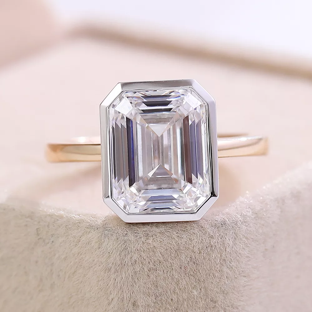 4ct Emerald-Cut Solitaire Ring | Emerald-Cut Moissanite Dual-Metal Solitaire Ring
