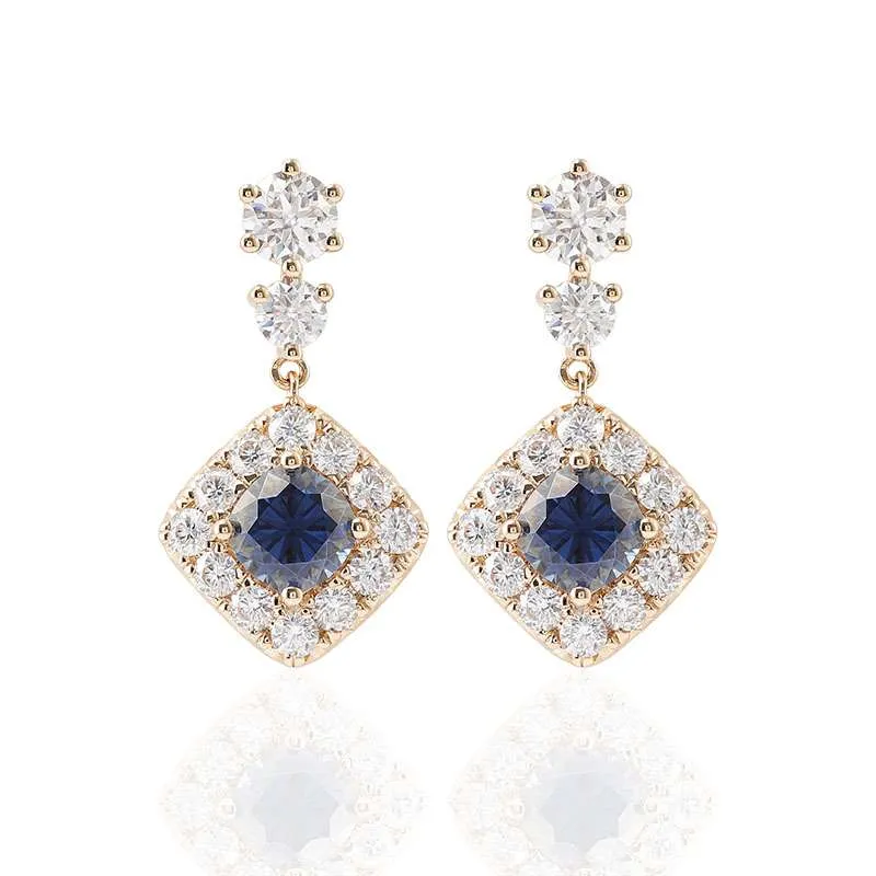 Discover the elegance of our cushion cut sapphire halo earrings. This stunning pair of earrings features a 5*5mm cushion cut sapphire in the center, surrounded by sparkling moissanite, a luxurious and eye-catching design. Perfect for special occasions or everyday wear, this pair of earrings will add a touch of sophistication to any outfit. Elevate your jewelry collection with this beautiful pair of earrings!