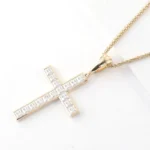 This Cross Pendant, beautifully filled with all the mystery, a crystal flawless moissanite inlaid on the golden bezel, a breathtaking surprise.