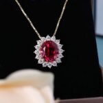 6.5ct Oval Lab Grown Ruby Cluster Halo Pendant Necklace