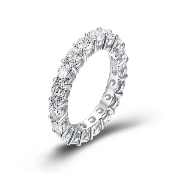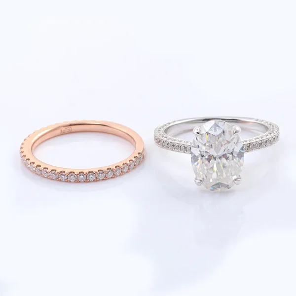 This classic setting features sparkling moissanite shoulders that coarsening towards a dazzling center gemstone