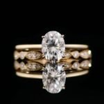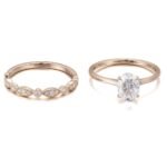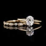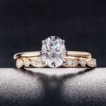 The 6x8mm Oval Moissanite Solitaire Wedding Ring Set transcends fleeting trends, showcasing the mesmerizing beauty of an oval cut moissanite in a timeless and elegant ensemble. The simple solitaire design allows for the moissanite to be the star of the show. You can choose a plain wedding band for a minimalist look, or a more intricate band to add a touch of personalization.