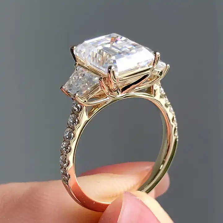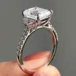 Discover our exquisite 8*10mm 4Ct Fancy Emerald Moissanite Cathedral Engagement Ring. Crafted for those who seek unmatched beauty and elegance, it’s the perfect way to say “Yes” and embark on your forever journey together.