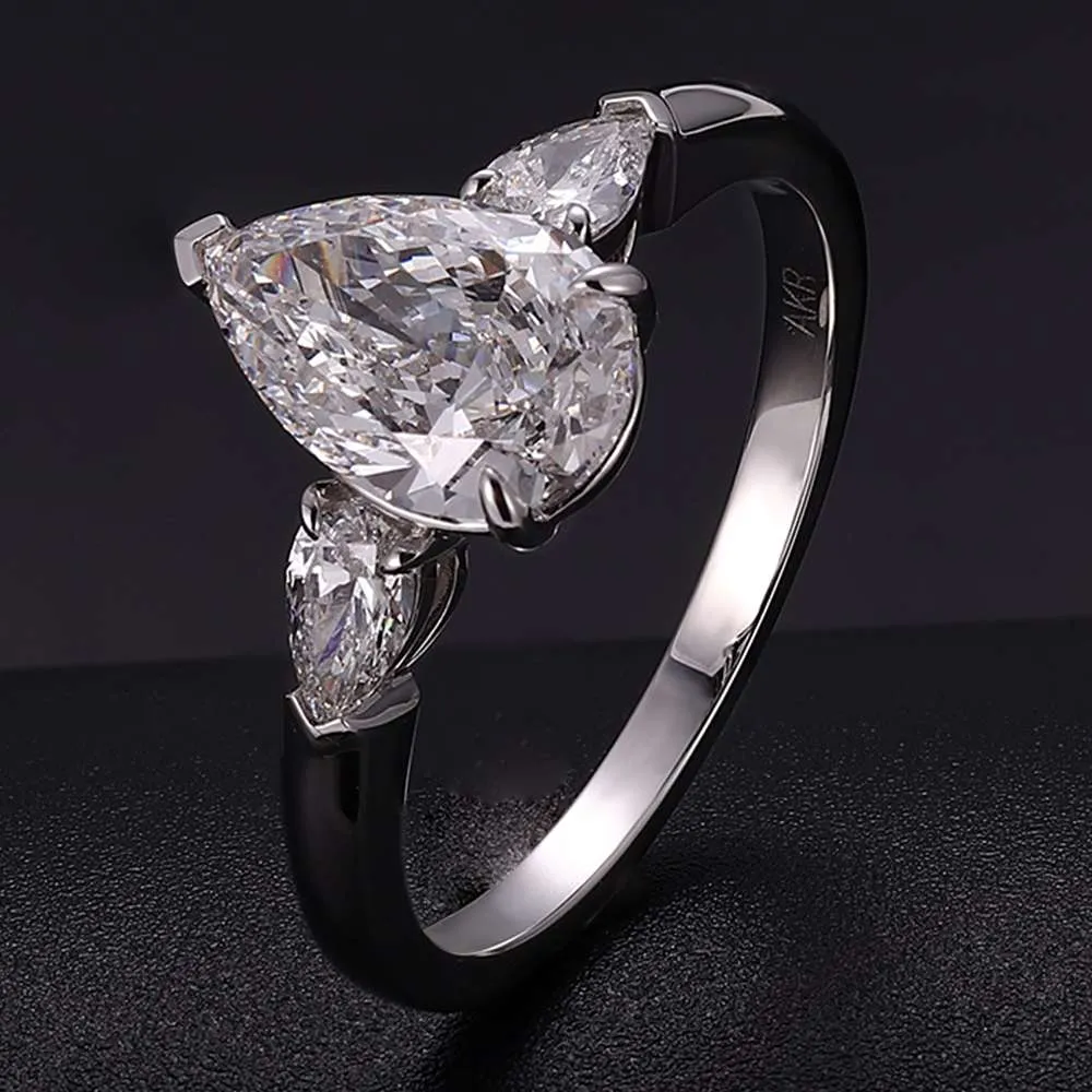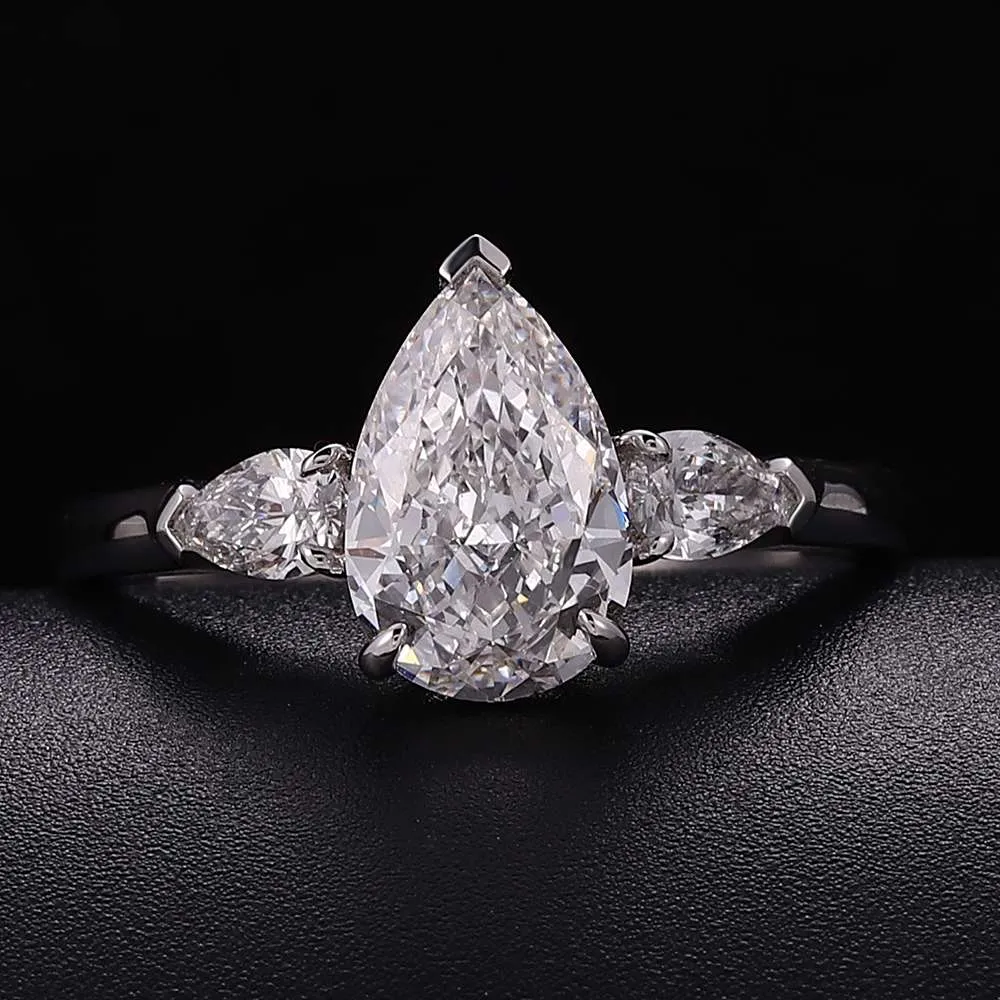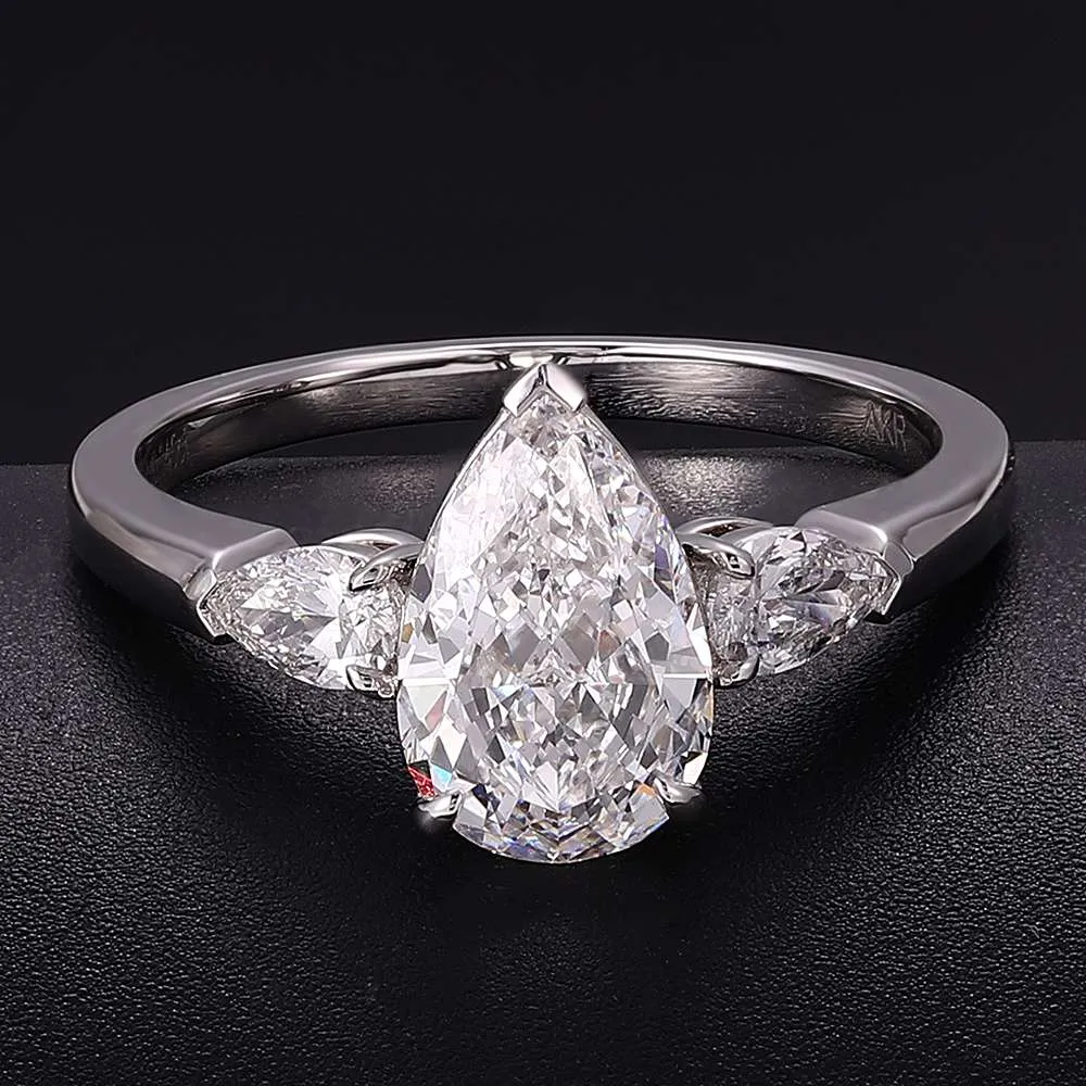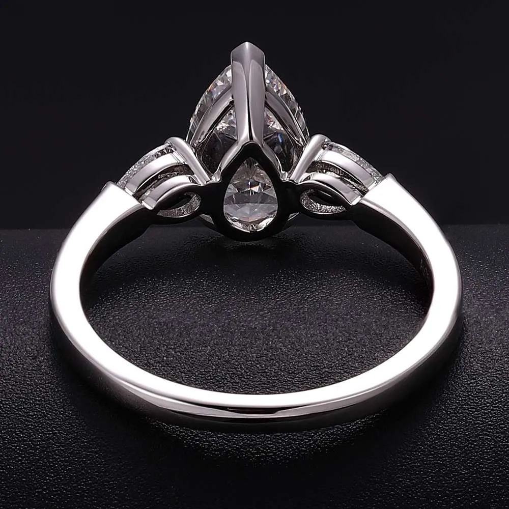 Breathtaking 2CT Pear Cut Lab Diamond Three Stone Ring