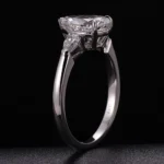 Unveil a symbol of timeless love with this Lab Diamond Three Stone Ring. The centerpiece, a stunning pear cut lab diamond, boasts a unique teardrop shape that catches the light from every angle, exuding unparalleled elegance. Flanked by two smaller pear cut lab diamonds, the design creates a harmonious and eye – catching look. Crafted from lustrous 18K white gold, the ring offers both durability and a touch of luxury. Ideal for those who seek a distinctive and glamorous piece, it’s a perfect way to celebrate your special bond.