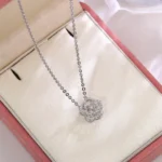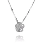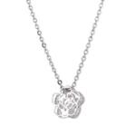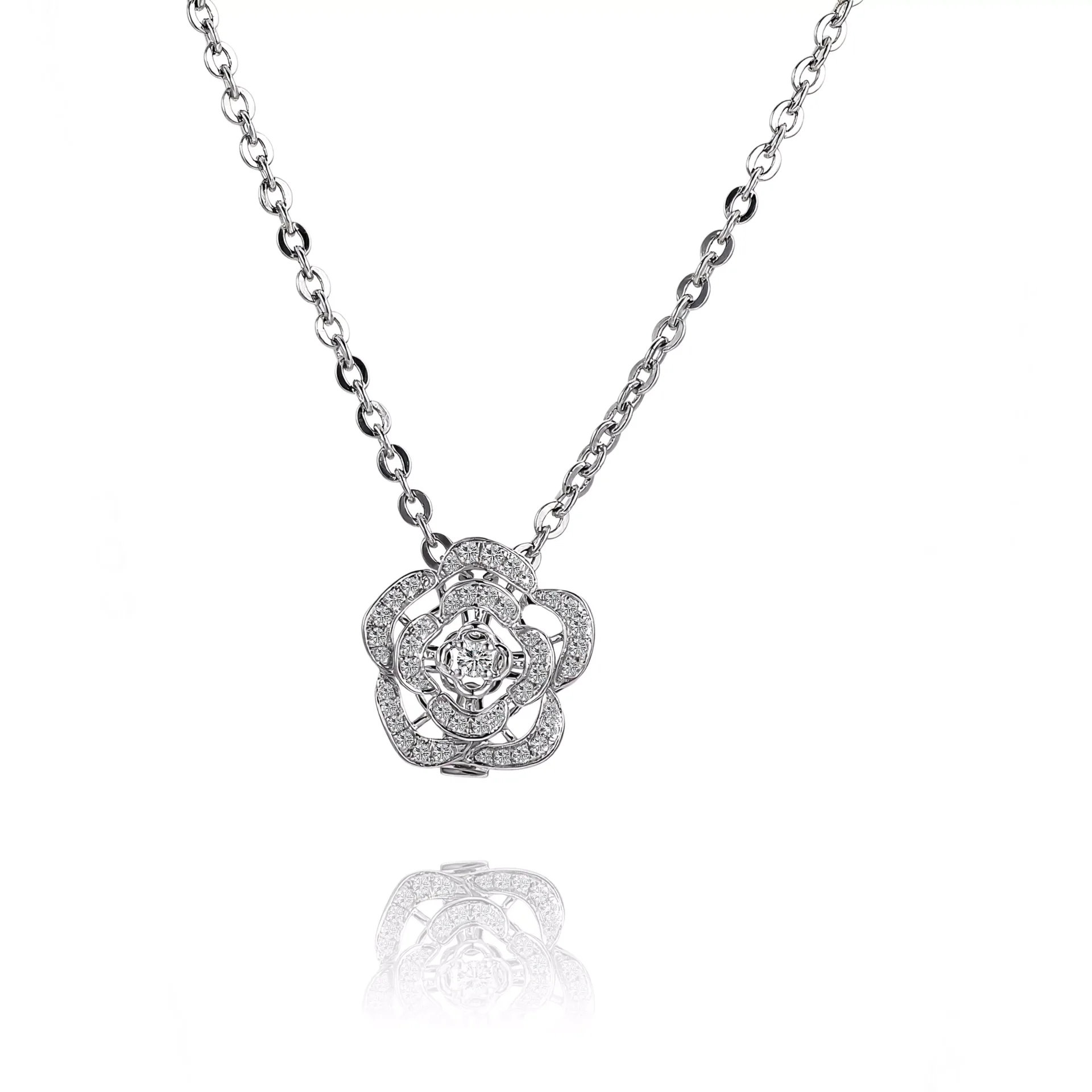 Camellia Clasp Pendant | 18K White Gold Camellia Clasp Necklace with Round-Cut Lab Diamonds