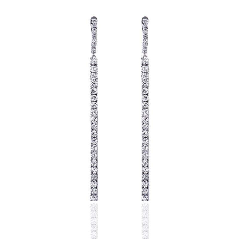 Chic Linear Drop Earrings – 14K White Gold, Moissanite Cascade