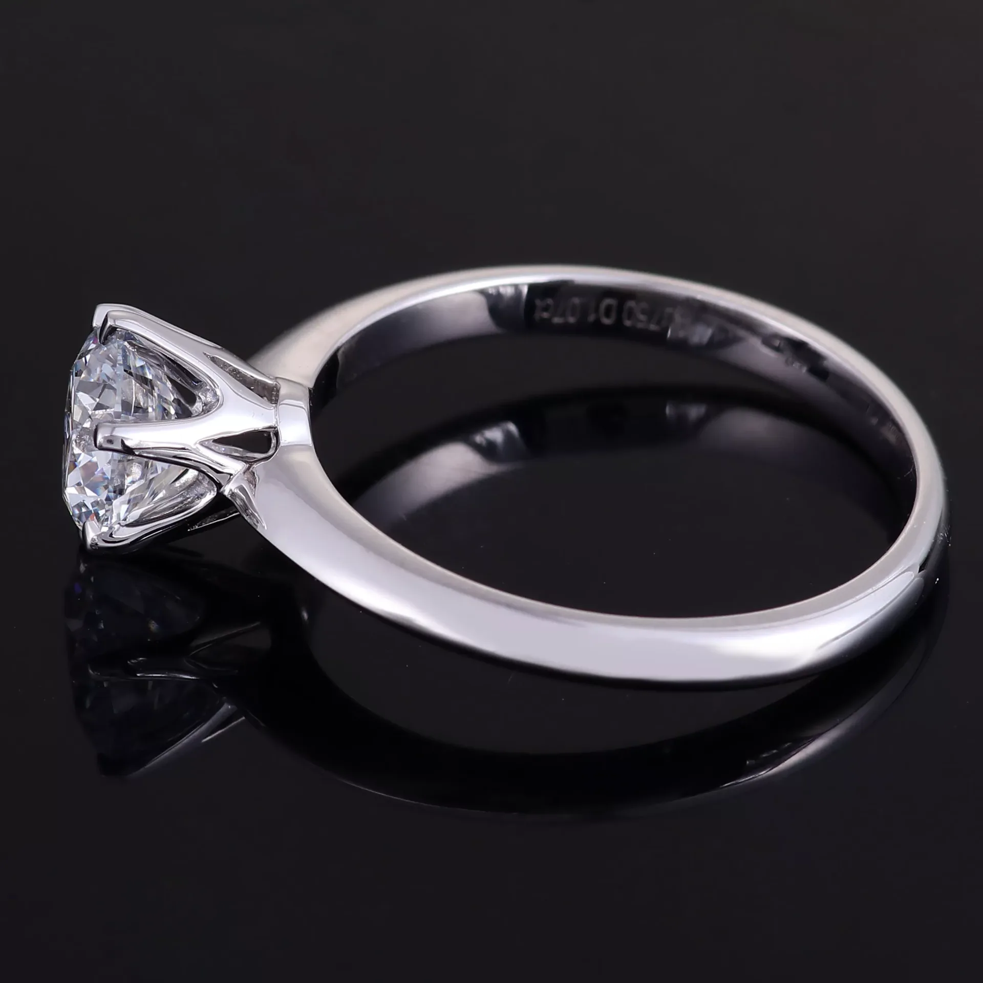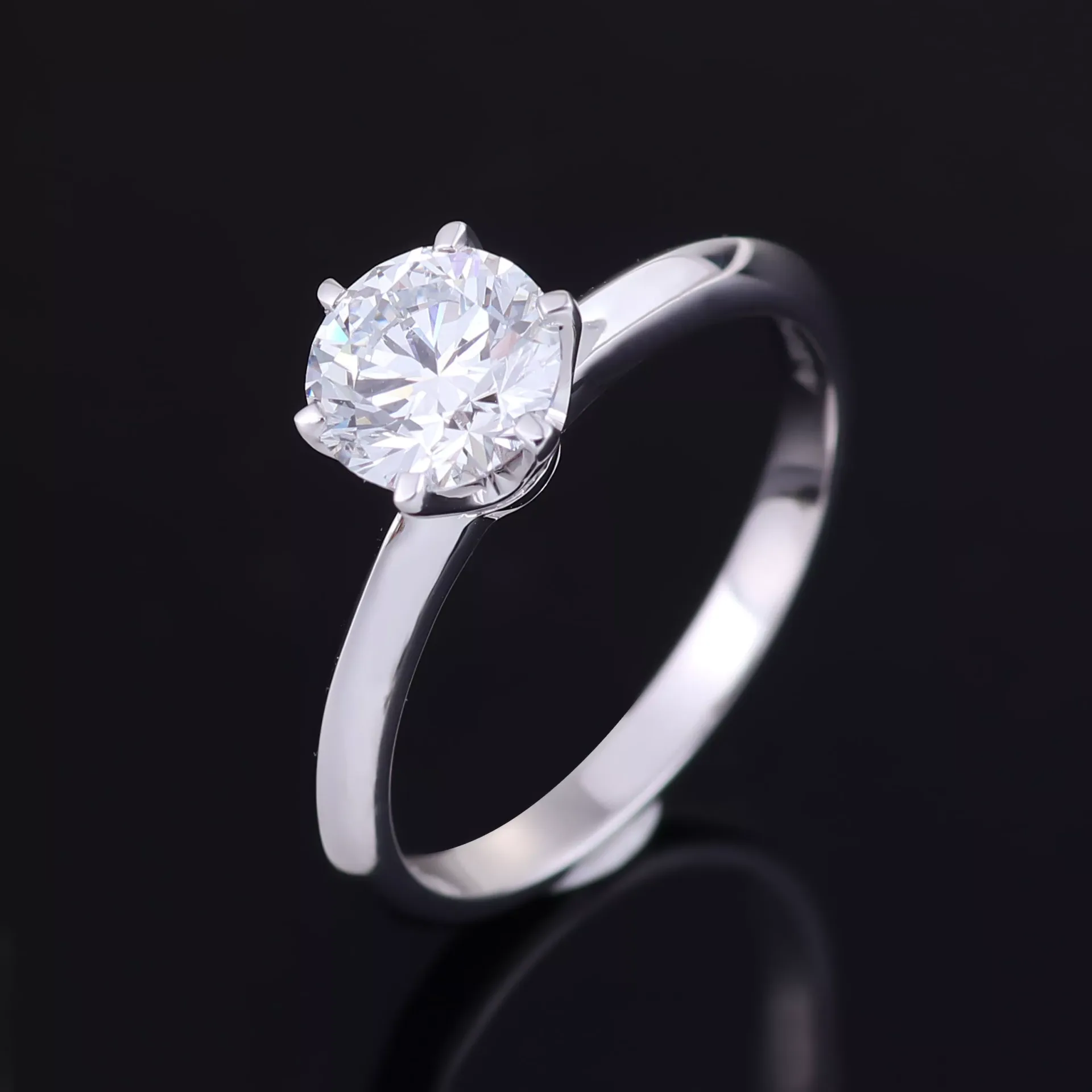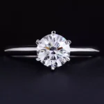The epitome of timeless elegance. This classic 6-prong round lab diamond solitaire ring in 18k white gold is the ultimate symbol of love. A magnificent, brilliant round-cut lab diamond is held aloft in the iconic six-prong setting, a design celebrated for maximizing the stone’s fire and brilliance from every angle. The sleek, polished band provides a simple, elegant foundation that draws all focus to the diamond. This ethical and breathtaking piece is a perfect choice for an unforgettable engagement, embodying pure sophistication.