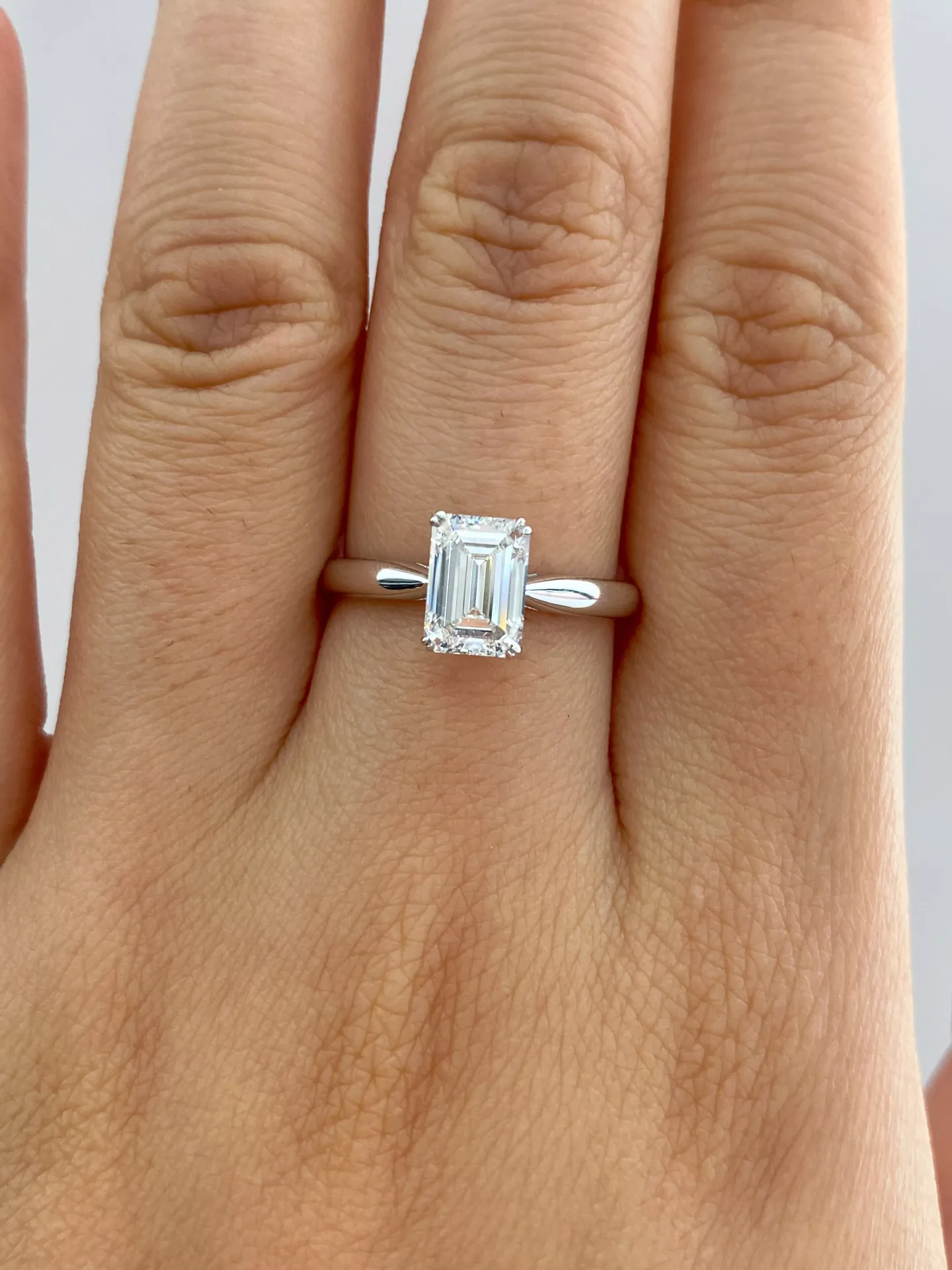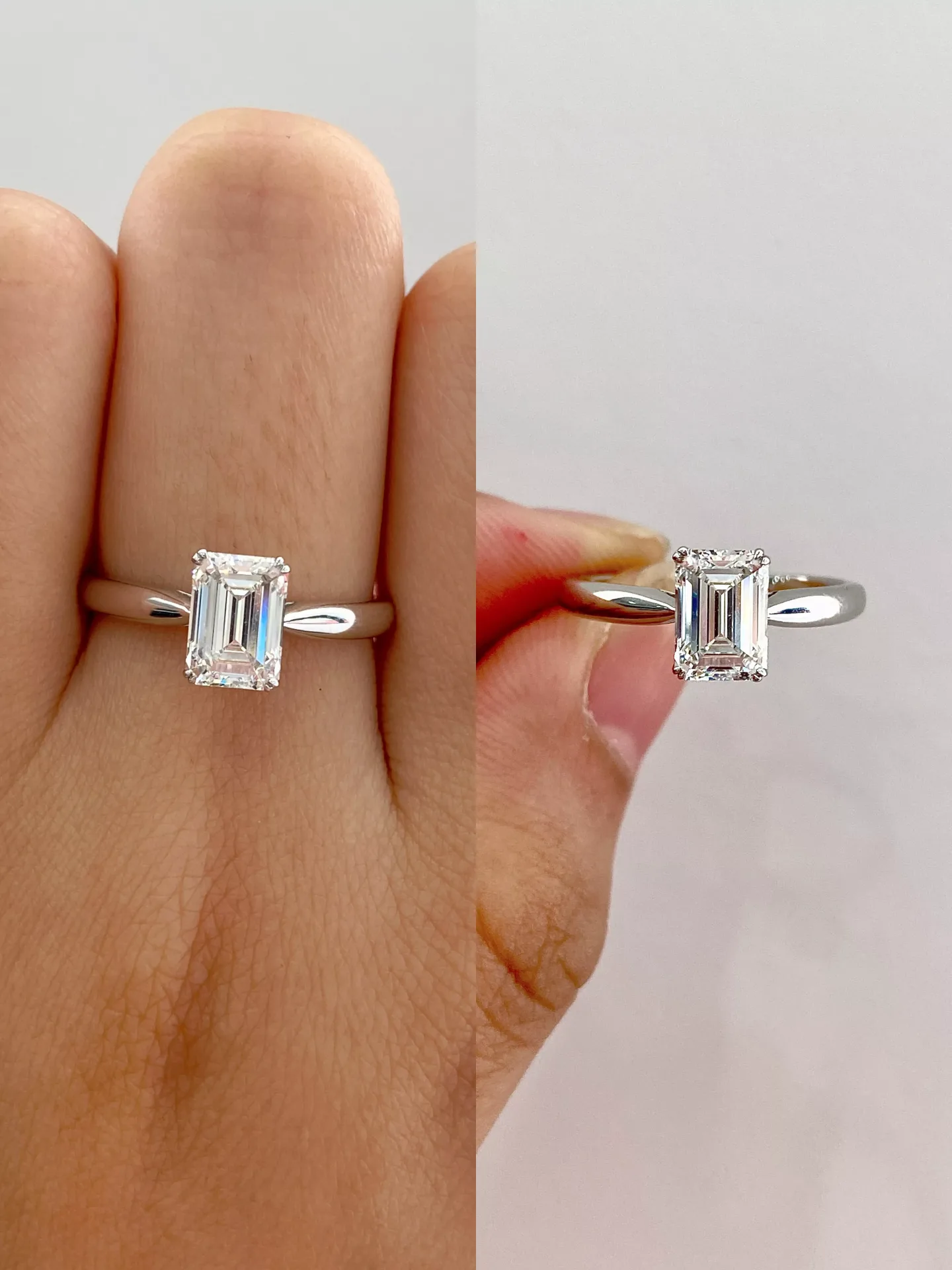 Classic Emerald Cut Lab Diamond Solitaire Ring in 18k White Gold