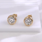 These 18K yellow gold stud Lab Diamond Earrings feature two brilliant round-cut lab diamonds, set in settings to maximize light exposure and sparkle. The polished gold bezels contrast with the diamonds’ icy brilliance, while the comfortable push-back clasps ensure effortless wear. Ideal for daily elegance, these studs blend timeless design with ethical luxury.