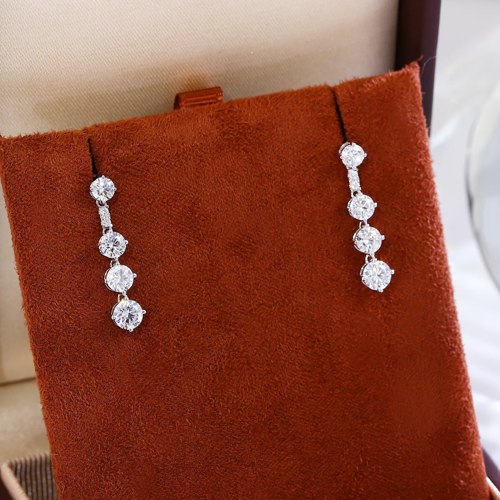 Illuminate your look with these exquisite classic round lab diamond dangle earrings in 18k white gold. This timeless linear design features a breathtaking cascade of brilliant, round-cut lab diamonds, designed to sway gracefully and capture light with every movement. Each diamond is expertly set to maximize its fire, creating a stunning stream of sparkle from lobe to shoulder. As the perfect accessory for a bride or the elegant finishing touch for a formal gala, these dangle earrings embody ethical luxury and unforgettable sophistication.