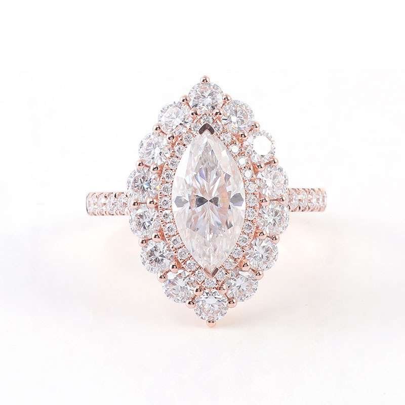Clear Eyes:2.2 CT Marquise Cut Moissanite Pave Ring