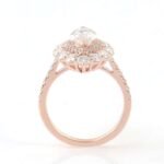 This mesmerizing rose gold engagement Pave Ring is a true showstopper. At its heart is a dazzling marquise cut moissanite stone with VVS clarity, boasting a unique and elongated silhouette that catches the light from every angle. Surrounding the centerpiece is a halo of smaller moissanite stones, meticulously set in rose gold, enhancing the overall sparkle and creating a luxurious, intricate look. The rose gold band, also adorned with delicate moissanite accents, adds a touch of warmth and elegance. Perfect for those who desire a distinctive and glamorous piece to celebrate their love.