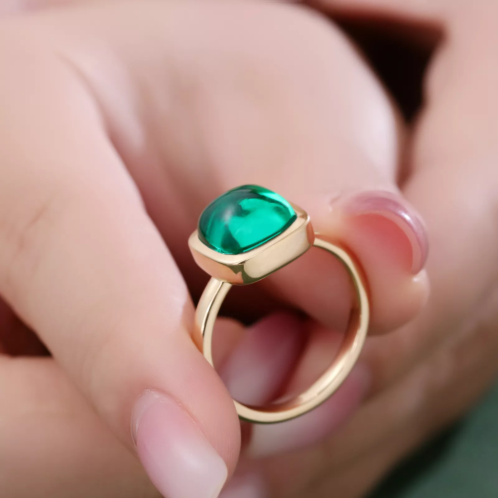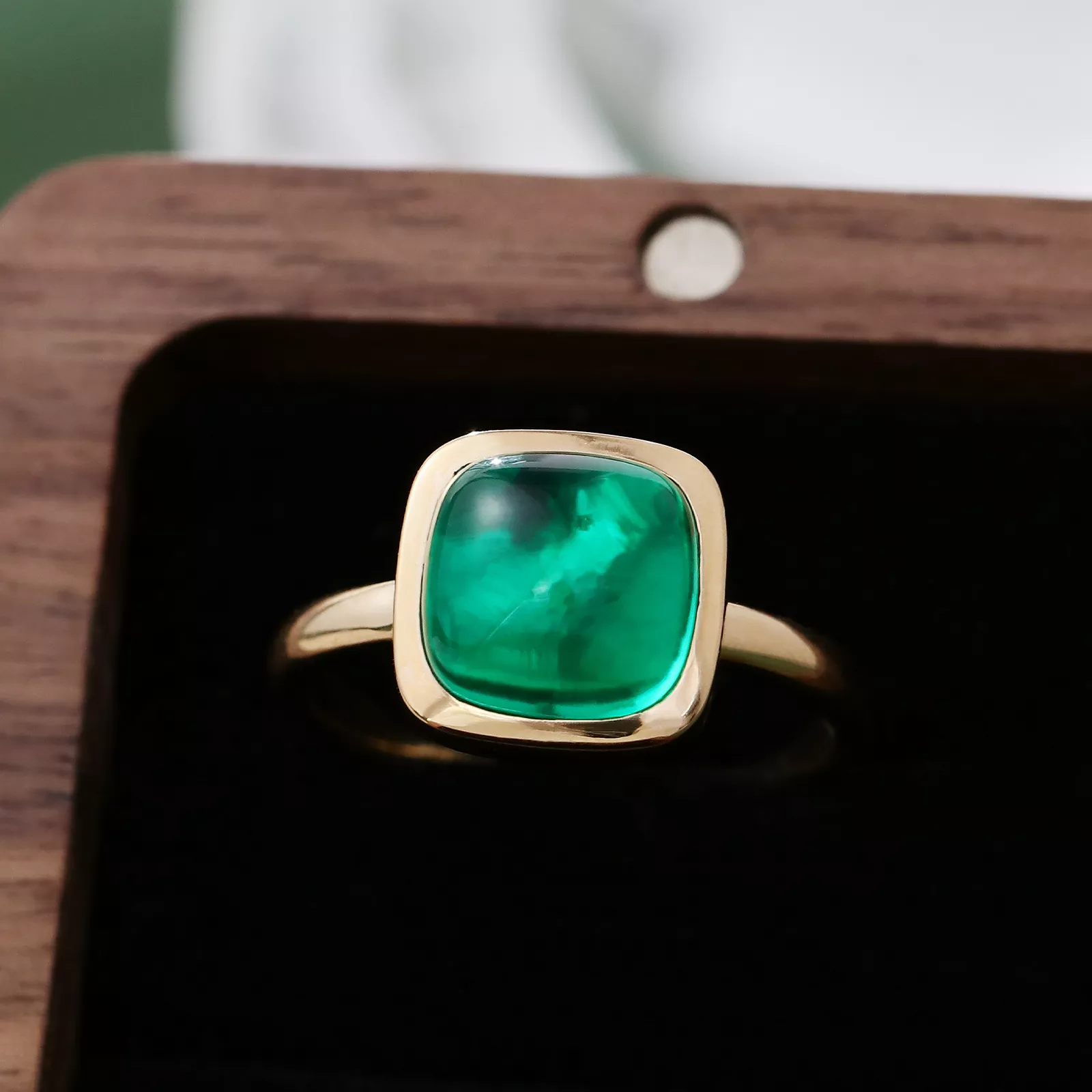 This Colombia Lab Emerald Ring showcases a 4.5ct cushion-cut lab emerald with signature Colombian green saturation, secured in a sleek bezel setting. Forged in warm yellow gold, the minimalist band focuses all attention on the gem’s velvety depth. Light dances through its facets – radiating vibrant clarity without prongs. Ideal for those seeking ethical luxury with uncompromised impact.