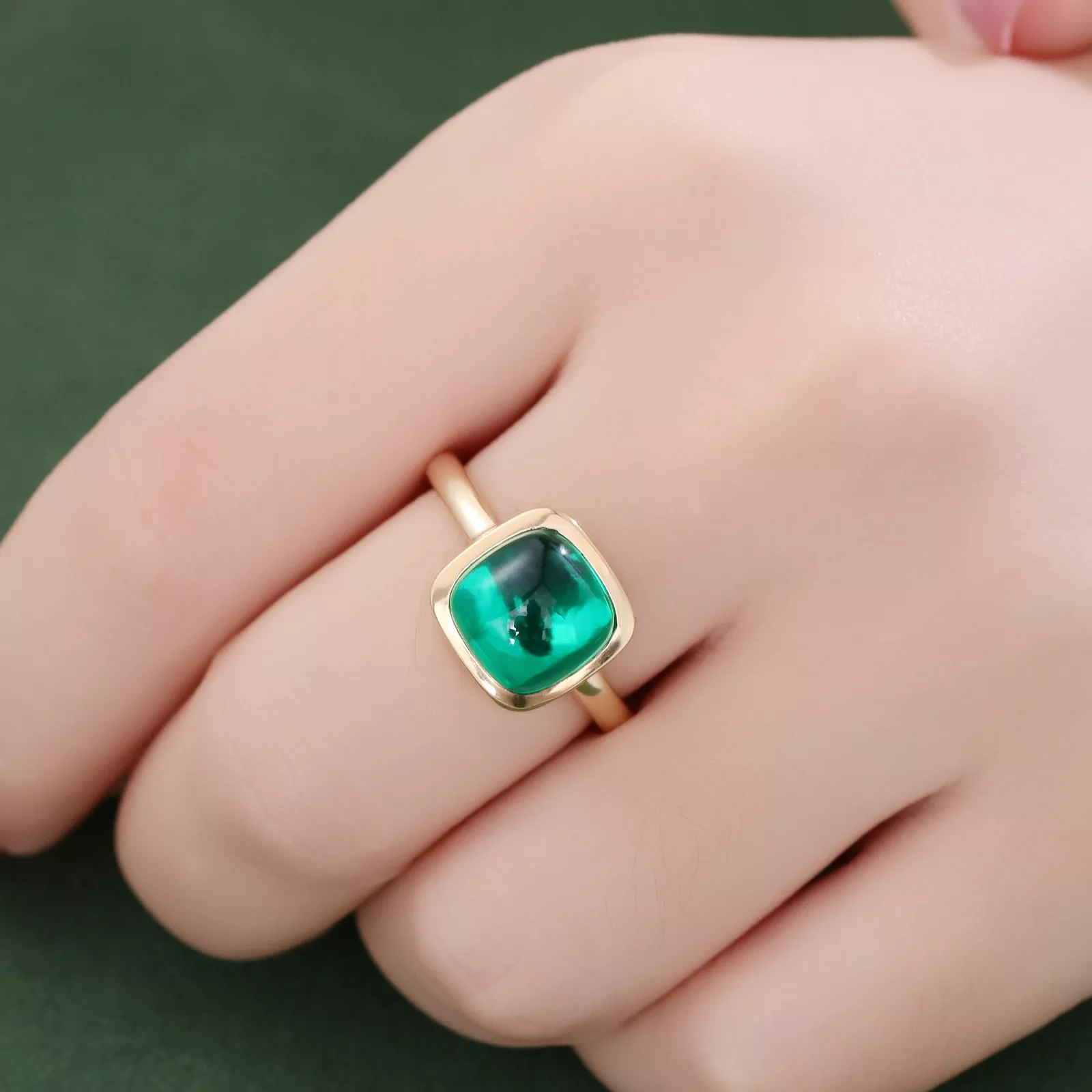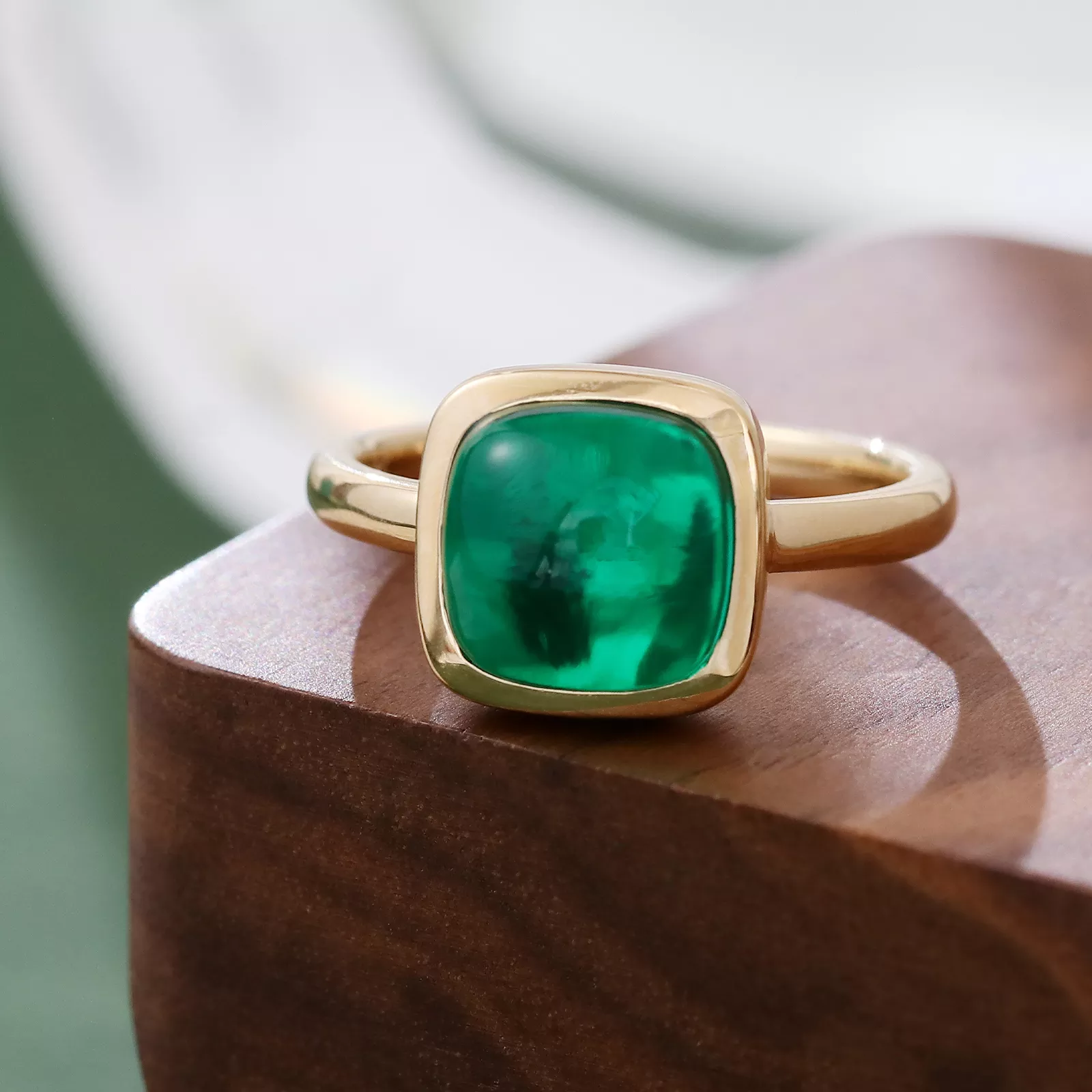 Colombia Lab Emerald Ring | 4.5ct Bezel-Set Lab Gemstone in yellow Gold
