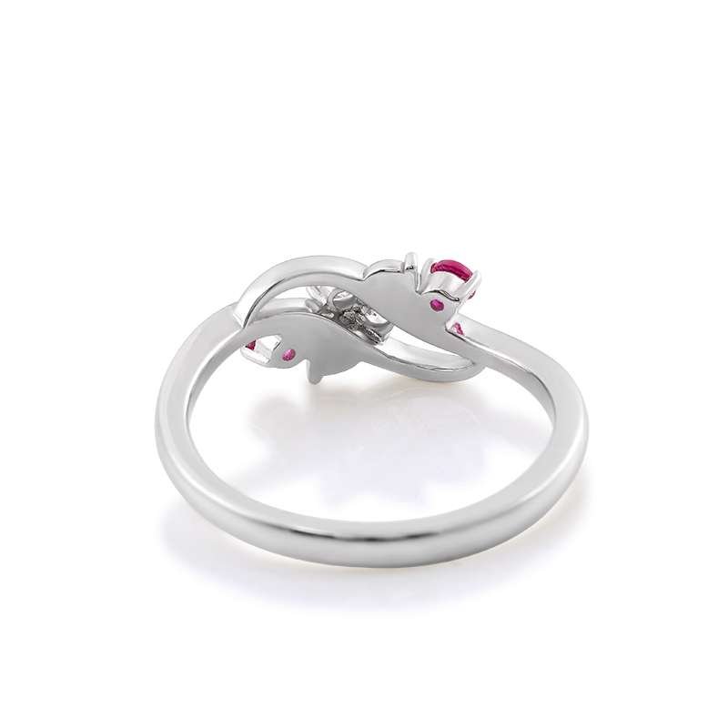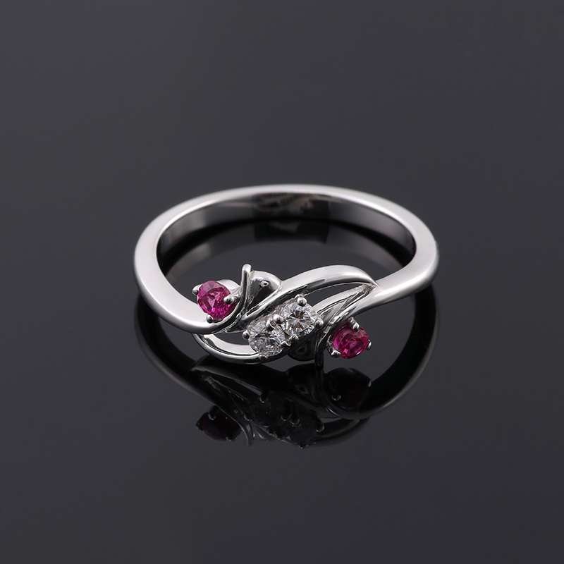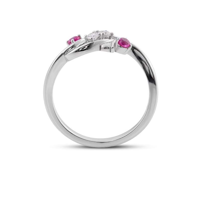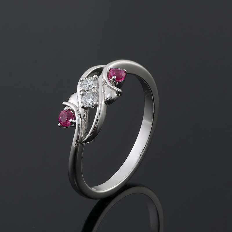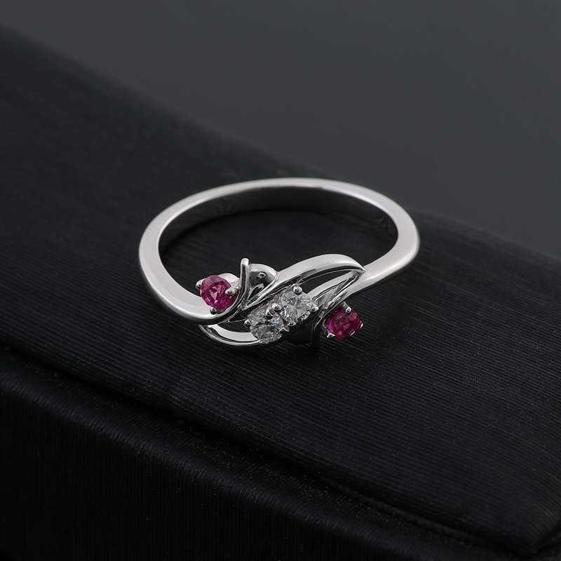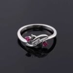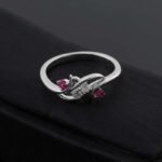 Discover our Colorless And Red Moissanite Ring, a symphony of elegance that perfectly blends grace and sophistication. Crafted from the finest materials, this beautiful ring features two dazzling moissanite center stones flanked by two vibrant rubies. The unique design showcases an elegant intertwined ring perfect for an engagement, anniversary or special occasion.