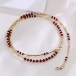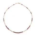 Crimson Fire-Weave Necklace | 18K Yellow Gold Bamboo Link Necklace with Natural Ruby Accents
