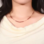 The Crimson Fire-Weave Necklace crafts an 18K yellow gold chain with articulated bamboo-style links, each segment polished to a warm lustre. Nestled within the gold links, natural rubies are bezel-set at intervals, their deep crimson hue igniting a vivid contrast against the metal’s glow.This piece embodies artisanal precision — where the organic texture of “bamboo” meets the fiery intensity of rubies, creating a bold yet wearable statement of heritage craftsmanship.