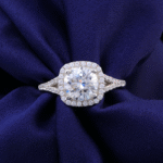 Cushion shape halo engagement ring with main stone 2.0ct 8.0mm round moissanite