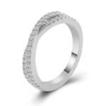 This White Gold Moissanite Round Cut Twisted Band Ring is a captivating piece that combines modern design with timeless sparkle. The moissanite stones, with VVS clarity and round cut, are meticulously set along the twisted band, creating a continuous and mesmerizing display of brilliance. The sleek white gold provides a luxurious base, enhancing the stones’ dazzling effect. Skillfully crafted, this ring offers a contemporary and elegant look, perfect for adding a touch of glamour to any outfit, whether for daily wear or special occasions. It’s a must have for those who love unique and stylish jewelry.