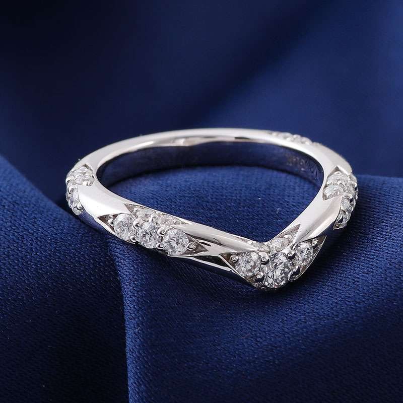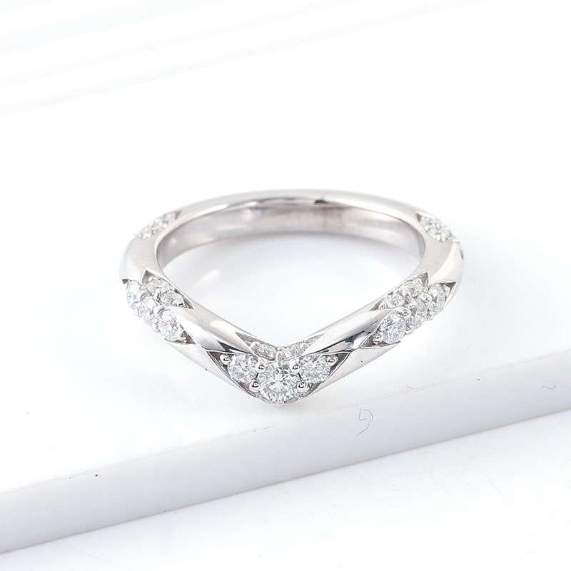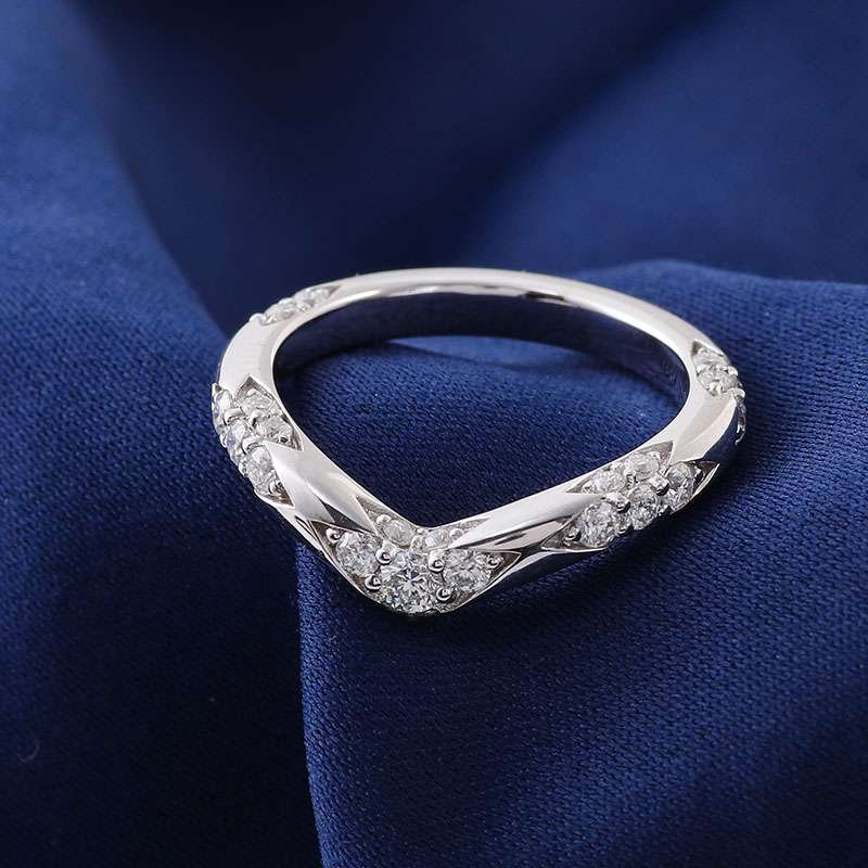 Elevate your style with this exquisite white gold V shaped Moissanite Ring. Featuring VVS clarity round cut moissanites, it blends modern design and brilliant sparkle. The unique V silhouette adds a touch of sophistication, making it ideal for stacking or wearing alone to accentuate your elegance on any occasion, from formal events to everyday moments.