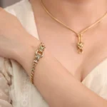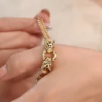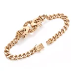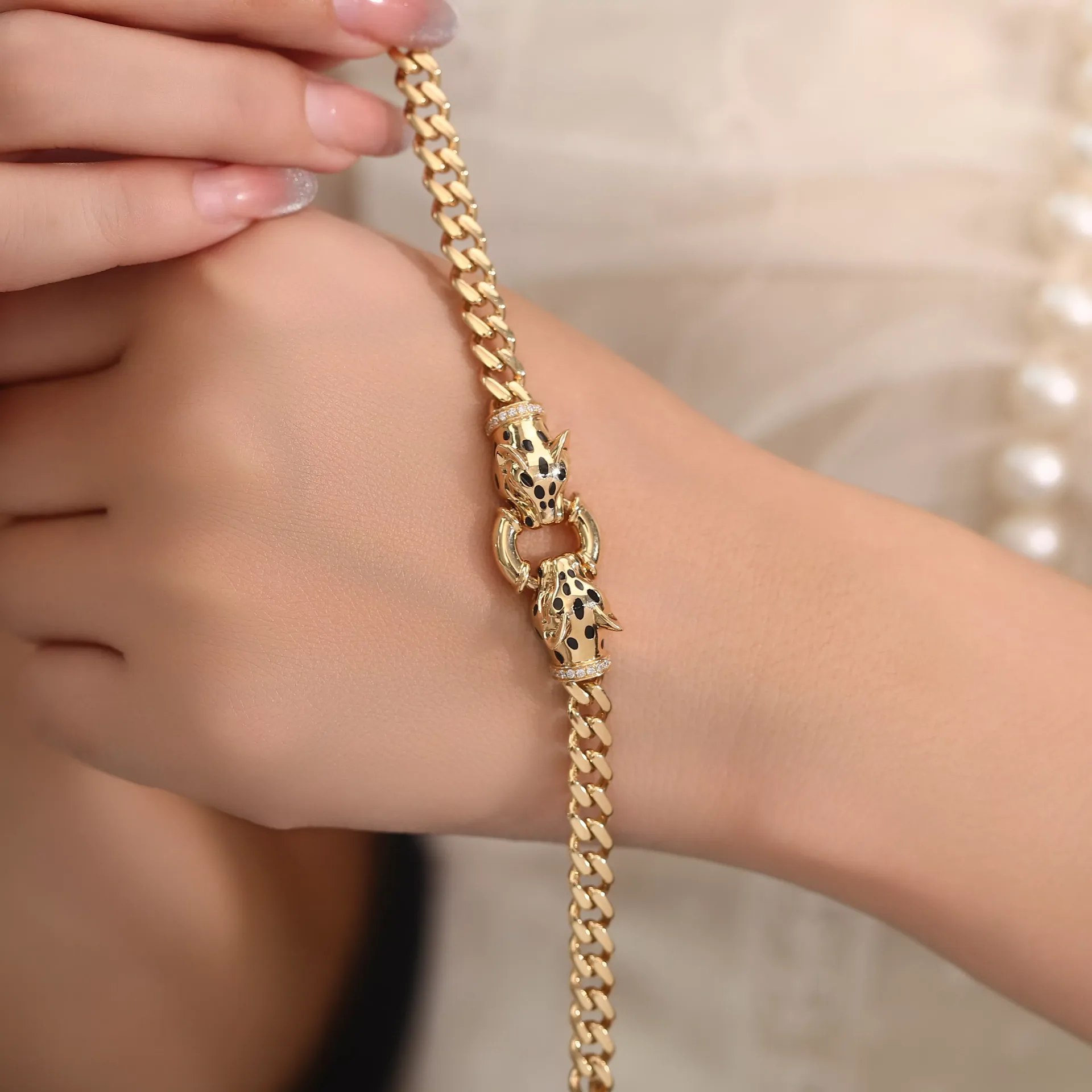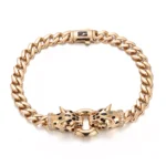 These Double Leopard Head Bracelet draw inspiration from twin leopard heads, featuring a precision-engineered hinge mechanism that creates a dynamic opening-closing motion, as if the mythical creatures are awakening. The 18K yellow gold chain links weave a wild, radiant glow, while lab-grown diamonds accentuate fierce eyes and luxurious ear details. Wear one for untamed individuality or pair them together to command regal presence, making these cuffs an iconic fusion of modern luxury and primal power.