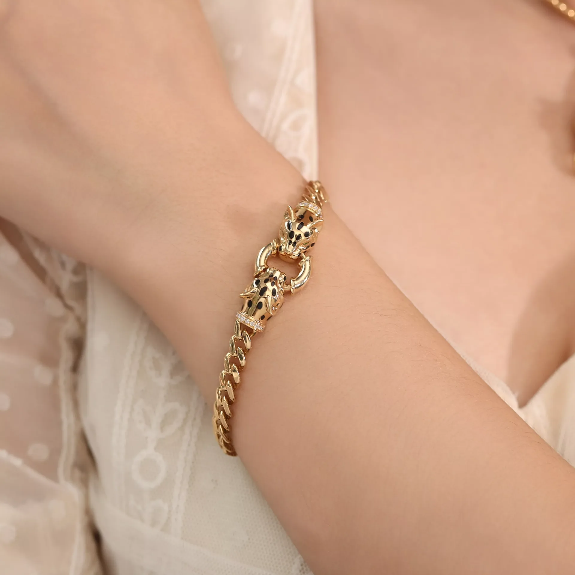 Double Leopard Head Bracelet | 18K Yellow Gold Pair with Lab Diamond