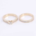 Elevate your elegance with our 10K Yellow Gold Dual Band Channel Set Diamond Ring Set. This stunning set features a brilliant 4.0mm round moissanite solitaire, accompanied by two bands adorned with 26 sparkling 2.2mm moissanite, all set in a sleek channel setting. The dual band design adds a contemporary twist to the classic diamond ring, providing both elegance and sophistication. Perfect for engagements, anniversaries, or special occasions, this ring set is a true symbol of timeless beauty and modern luxury.