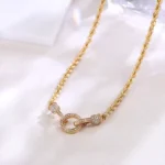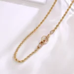 Dual-Cable Radiance Necklace crafts an 18K yellow gold chain with deeply textured helix grooves, evoking braided silk in solid metal. The clasp transforms into a diamond-encrusted module — lab diamonds pavé-set in geometric patterns refracting ice-bright flashes against warm gold. The rope links meeting polished diamond planes , where every curve showcases artistry through timeless duality of strength and scintillation.