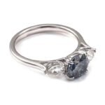This White Gold Moissanite Ring is crafted from white gold, providing a pure and noble appearance. It features a round cut deep – blue moissanite as the main stone, flanked by two pear shaped moissanites, all with VVS clarity, showcasing brilliant sparkle. The combination of the luxurious white gold and the high quality moissanites creates a piece of jewelry that is both modern and elegant, perfect for those with refined taste.