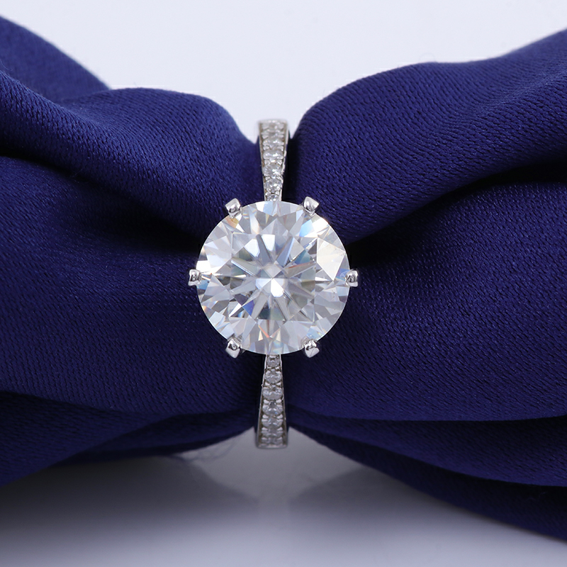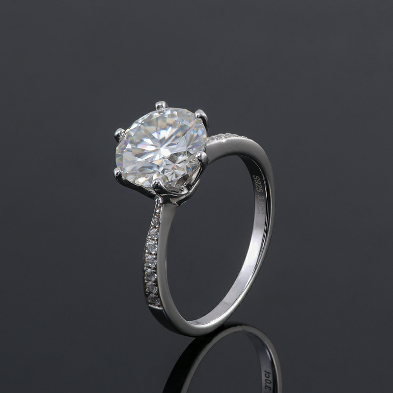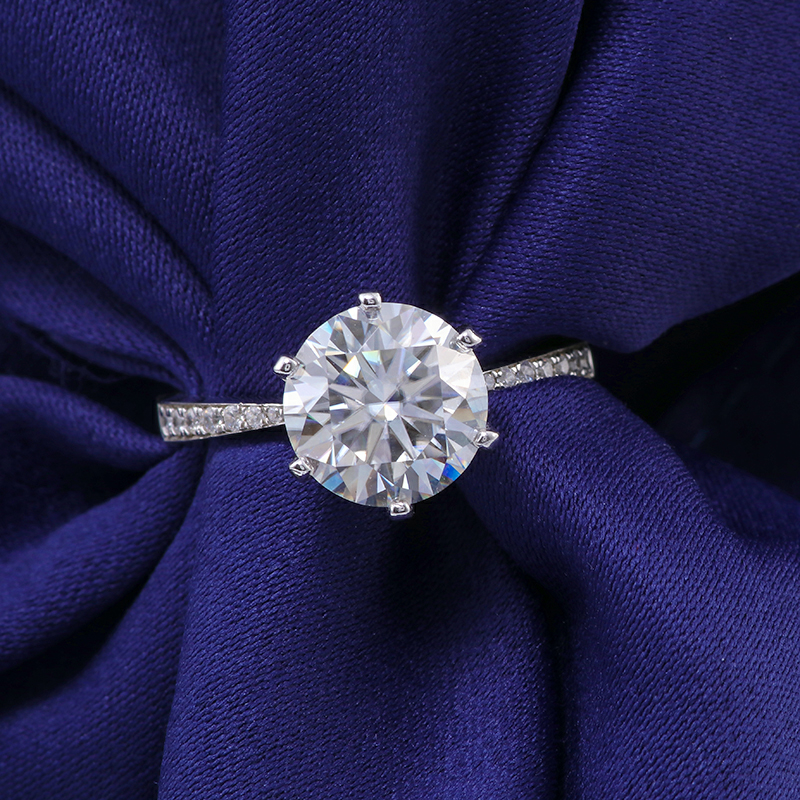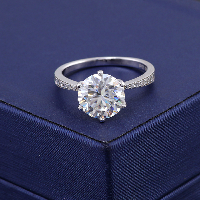 Elegant 6 claw round shaped moissanite solitaire ring