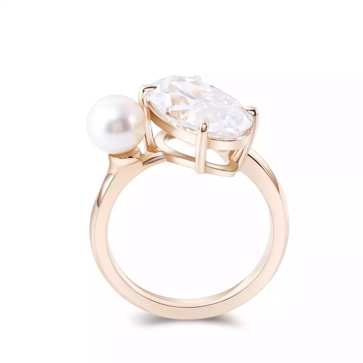 Embrace the beauty of contrasts with our exquisite moissanite and pearl toi-et-moi ring. This captivating piece features a mesmerizing oval-cut moissanite paired with a lustrous pearl, both set in a polished rose gold band. The perfect balance of brilliance and softness, this ring is an ideal choice for engagements, anniversaries, or as a luxurious self-gift.