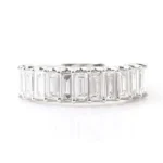 Indulge in the sophistication of this remarkable Moissanite Ring! A collection of VVS clarity baguette cut moissanites are precisely set in lustrous white gold, creating a dazzling display of light and brilliance. The minimalist design emphasizes the purity and beauty of the stones, making it a perfect accessory for both formal events and everyday wear. Whether you’re celebrating a special occasion or simply adding a touch of luxury to your look, this ring is a timeless piece that will never go out of style