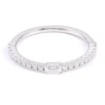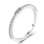 Adorn your finger with this exquisite white gold Moissanite Ringfeaturing an emerald cut moissanite at its center, surrounded by brilliant round cut moissanites. The emerald cut lends a sophisticated geometric allure, while the white gold band enhances the stones’ radiant sparkle. Perfect for adding a touch of timeless elegance to any ensemble, whether it’s a formal event or a special everyday moment. A must have for those who appreciate refined jewelry design.
