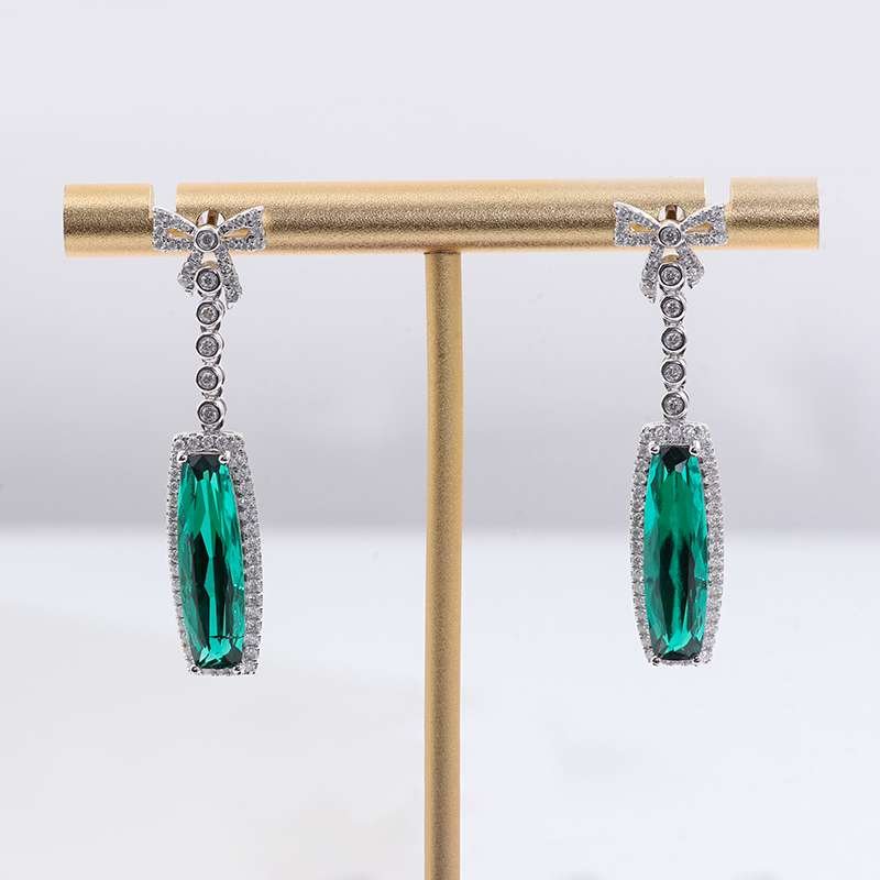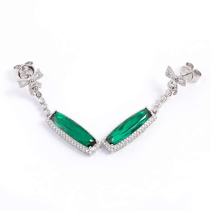 Emerald and moissanite Bow Drop Earrings