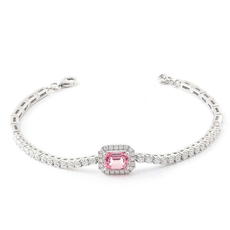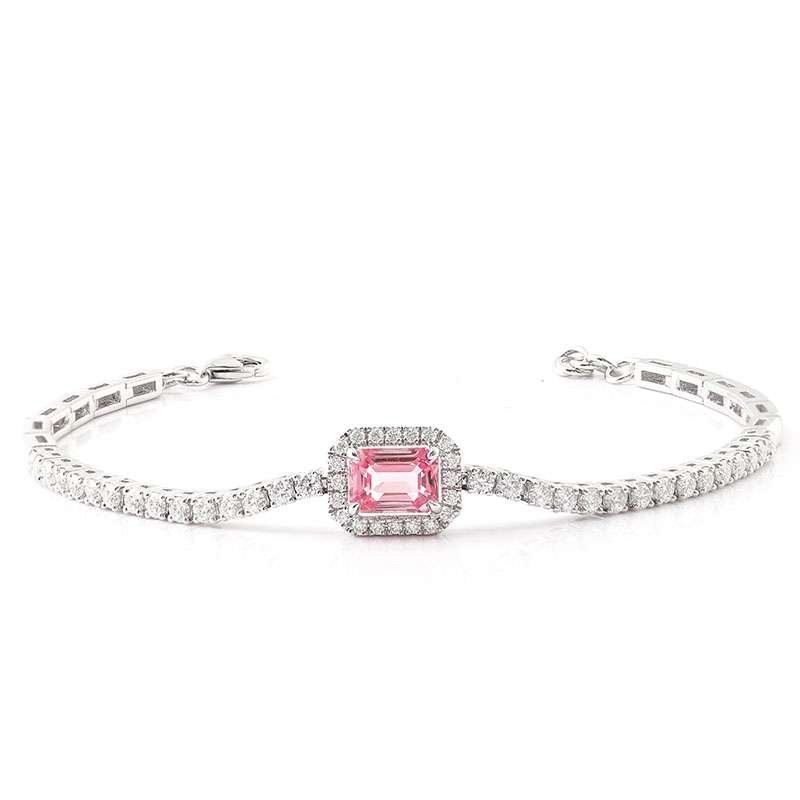 Home » Jewelry » Emerald Pink Lab Gemstone Halo Tennis Bracelet