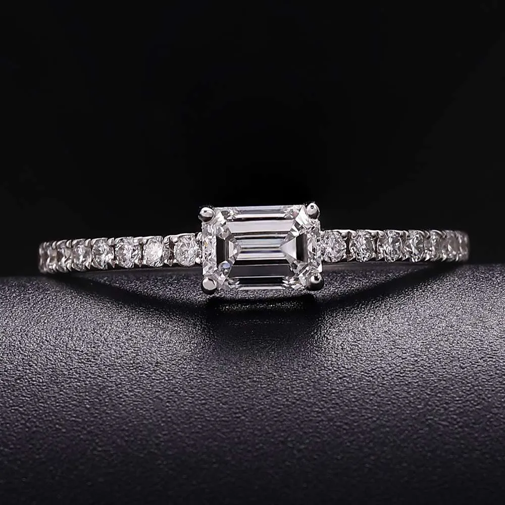 Exquisite 0.5CT Emerald Cut Lab Diamond Pave Ring