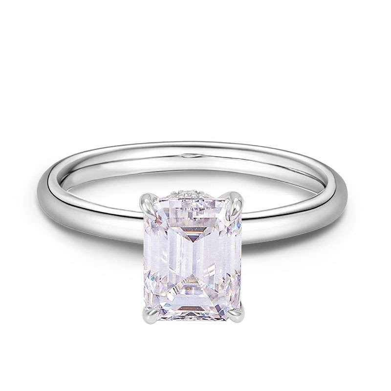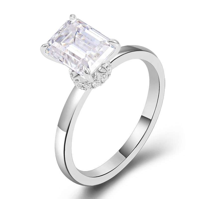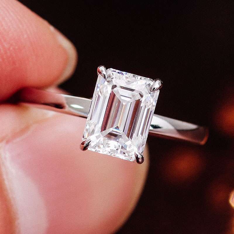 Exquisite 2CT Moissanite Emerald Cut White Gold Ring