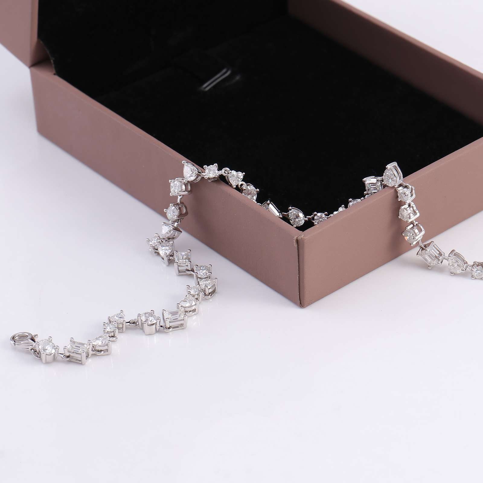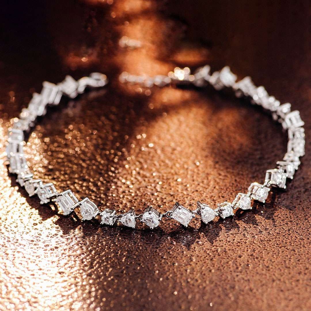 Exquisite Multiple stone cuts White Gold Moissanite Bracelet